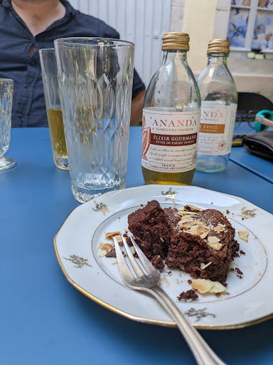 Endroit absolument charmant :une boutique bio bien achalandé,une partie créateur superbe et une terrasse ombragée pour la partie bar restaurant bio très agréable 👍 le personnel est absolument adorable💕, le café très bon et la carte des boissons bio est variée. Le seul bémol pour moi (que j'ai partagé avec le personnel qui,encore une fois est extrêmement bienveillant) ce sont les quantités dans l'assiette. Il est annoncé une assiette unique faisant office "d'entrée + plat" hors nous avons ici uniquement une entrée. C'est bon mais la quantité est troo faible (et du coup l'assiette très chère ...vingt et un euro avec une petite tranche de truite bio). Même avec du bio et des produits locaux l'assiette est clairement à cinq euros de trop. Et puis il y a le vin au verre (mais dans notre cas je pense que c'était une erreur d'inattention) vendu entre six et huit euros pour les vins de bouteilles et servi dans des petits verres à dégustation de vin blanc (12,5 cl) mais rempli a moitié ! (La norme en restauration est 6 verres pour une bouteille soit un peu plus de 12,5 cl)🫤 Ici seulement 6cl ! (Soit plus d'un euros le cl).j'en ai fait la remarque et la personne nous à fait très gentiment un geste commercial sur le vin 👍 mais sur les quantités elle m'a répondu que cela était une affaire de perception car d'autres personnes trouvaient cela copieux. Je donne ces informations car le budget vacances est parfois restreint et les sorties au restaurant rare voir très rare et cette information sur les quantités dans l'assiette me paraît importante si l'on s'attend à un plat généreux (surtout si annoncé " entrée+ plat") à vingt et un euro l'assiette cela reste pour moi beaucoup trop élevé au vu des quantités. Mais l'endroit reste vraiment charmant et j'insiste à nouveau sur la bienveillance et la sympathie de tout...