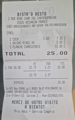 Read moreAprès avoir vu le menu à l'extérieur du bistro, nous nous sommes rendus pour en déguster un menu entrée, plat, dessert+boisson (21,90€). La serveuse à été super accueillante et sourient. Une amour de personne! Tout été sympatique jusqu'à qu'on se rendre compte, avec 2 autres tables présentes, que nous attendions depuis quelques longues minutes 2 simples pizzas (plat chaud). En voient les tables voisines tous étaient étonnés pourquoi les pizzas des tables qui avaient arrivés après nous (avec même menu), étaient servis bien avant nous!!!! Après 45 minutes d'attente, nous décidons de partir et payer ce que nous avons consumé: 1coca+1entrée. En explicant au propriétaire, il ne s'excuse même pas de l'attente et en plus il nous réponds avec un ton cinique et indélicat disant qu'il faut "s'attendre à voir passer des commandes avant nous"!!!!! Bien-sûr que sa réponse nous laisse mal a l'aise, voir même énervés. Il n'a même pas essayer de savoir plus et en aucun moment il a demandé des excuses! Nous avons payé les 2 cocas + 1 tapa de charcuterie + 1 tapa mixte. Le tout pour 25€. Nous sommes aller pour passer un jolie moment après un sortie de l'hôpital et nous nous sommes retrouvès avec un propriétaire qui est contrarié et n'écoute pas les clientes! Plus jamais! Merci à la table 3, d'avoir aussi...