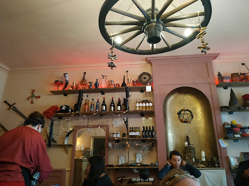 Read moreQue dire... L'entrée dans la taverne est déjà une aventure en soit, tout est agencé parfaitement pour titiller l'envie de découvrir ce qu'il se cache sur chaque étagère, l'autel à la Déesse resplendit au centre du mur, les flacons, les fioles, les livres, le décor est posé et bien posé ! Ensuite on tombe sur Eva et Michel, l'aventure continue en leur compagnie, ils sont parfait dans leur rôle d'hôtes et de taverniers, ils sauront vous faire sentir de la famille, aucun doute là dessus ! Et si jamais vous hésitez encore, regardez le menu, les boissons (tisane spéciale de la sorcière concoctée par Eva, alcool locaux et authentiques ou que sais je encore !), les mets proposés, vous en prendrez, reprendrez et reviendrez avec le même sourire béat que lorsque vous avez découvert le lieu. Et n'oubliez pas leur soirée à thèmes. Nous c'était Viking ce soir, un conteur, des convives agréables et des hôtes au top toujours (merci Roman aussi !) Et olalala la nourriture, un délice. Ai-je oublié les après midi thématiques ? Mais oui ! Cet après midi, nous avons fait un voyage chamanique et une session de paroles par la suite avec Justine Lhabitant, c'était une expérience magique et tellement agréable. Eva nous aura même apporté une tisane froide de sa conception ainsi qu'une succulente pâtisserie. Je finirai par dire : le tailli c'est avec du miel, bordel ! Et à ceux qui ont lu jusqu'ici, allez y, ça vaut le détour et vous ne pourrez qu'être conquis, comme je l'ai été. Merci au Calice Enchanté...