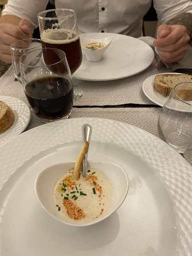 Read moretrès bonne table cuisine gastronomique et service et présentation qui vont avec sans chichis. La cuisine et le personnel de salle sont a l'aise conseillent sont cordiaux et ne se refugient pas derriere des termes pour impressionner Ils savent leut job et le font. on est choques au debut par la salle qui est meme pas minimaliste mais plutot archi old school sans rien et qui vire meme au vieillot . Mais au fond c'est pas derangeant il y a pas de fausses notes (hormis la surprise initiale peut etre) c'est confortable ca permet de se concentrer sur ce qu'on mange et les humains que on côtoie et la note est ressort aussi allégée.
