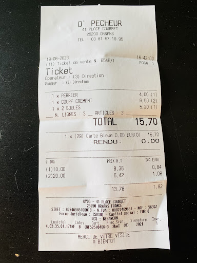 I kept the receipt requested after the said payment with the bank card on your terrace and now put it online. To prove that we have been in your restaurant...