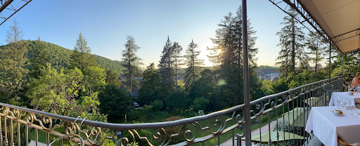 The history of the building itself is incredible, but let's go back to the restaurant. The parcel is on a slope, with a private great garden in front of the building, which means you only see the trees of the garden and the forest on the other side of the valley. If you are lucky to have good weather, you can even eat on the terrasse (see the picture).