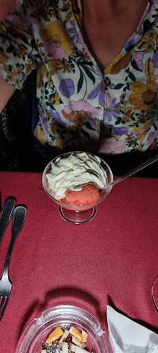 Hotel Restaurant très agréable ; nous y avons seulement diner; 2 plats de maigre ( poisson accompagné de deux belles gambas et dun assortiment de légumes ) savoureux et cuisiné et produits maison, en dessert fraise belle Hélène avec glace au beurre de caramel; savoureux ; en boisson deux bières pression ( c'était la canicule; pas de vin pour nous quand on frôlé les 36 A 21h côté jardin) Le chef qui doit aussi être le patron est très sympathique et accueillant il en va de même pour la serveuse. Rapport qualité prix très bon 2 plats à la carte deux dessert deux bières, 1 café et un américano le tout 60...