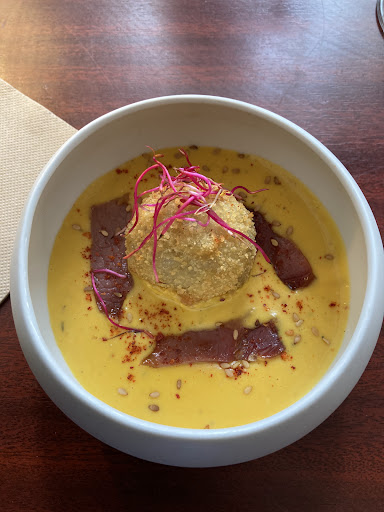 Et c’est vraiment dommage, car la qualité est au rendez-vous : la cuisine est faite maison, avec des produits locaux bien travaillés, les assiettes sont copieuses sans être lourdes, et le service est agréable, simple et efficace. Il y a un vrai savoir-faire en cuisine, et une ambiance qui fait du bien. Le genre de lieu qu’on aimerait recommander à tout le monde… si seulement on pouvait en profiter plus souvent.