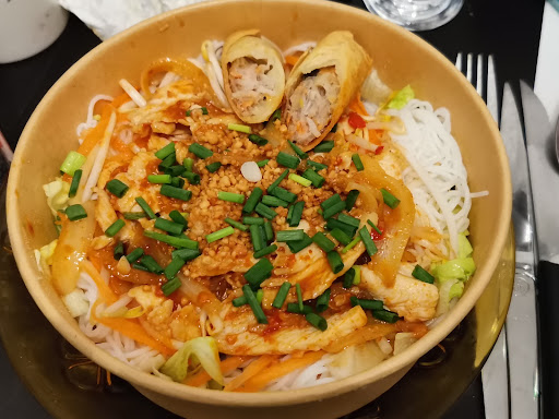 Very good freshly cooked food. They have made efforts to be Covid19 safe. There are screens at the counter and they are wearing masks. Gel is provided. We ate in and the food was served in take out boxes and with disposable cutlery and chopsticks in sealed packs. The spring roll/nems were clearly freshly cooked and much crispier than you often get. My fried noodles with shrimp was delicately flavoured with a lot of chives/wild garlic (not sure). My wife’s pad Thai was good (I finished it :-]) and not too sweet for a change. Pleasant helpful service. They asked if we wanted spicy or not spicy. We both said medium (what else the first time you try somewhere?) and they were very mild. Glad we found them and hope to find an excuse to go again when...
