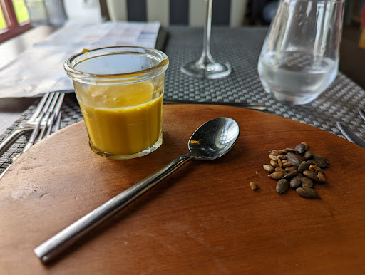 Avis : Nous avions réservé, mais au téléphone on nous explique qu’aucune place en terrasse ne peut être garantie — ce sera « premier arrivé, premier servi ». Heureusement, à notre arrivée, une table dehors se libère et nous nous installons.