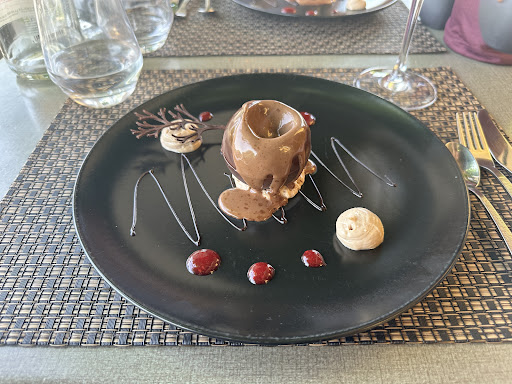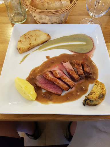 Read moreExcellent lunch on pleasant terrace could've spent the whole afternoon here drinking pouilly fume. Staff were great and attentive. I had lamb to start followed by veal then a cheese course then pistachio cake for desert. All cooked to high standard and beautifully presented. Friendly service and good for well behaved children we had our 1 and 4 year old with us....