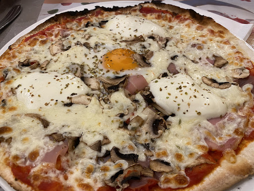 On a lâhabitude de commander des pizzas Ă emporter chez nous. En visite dans la rĂ©gion nous avons voulu tester les pizzas de la rĂ©gion. PremiĂšre surprise, lâĂ©paisseur de la pĂąte, qui ressemble plus Ă une tarte (trĂšs) fine quâĂ une pizza. DeuxiĂšme surprise, la taille de la pizza ! 16⏠pour une pizza vĂ©gĂ©tarienne qui tient dans une assiette de repas classique. Une seule pizza vĂ©gĂ©tarienne au menu. On a demandĂ© dâenlever les lardons sur lâune dâelles. Dâhabitude on nous demande par quoi remplacer⊠lĂ non, un peu dommage. MĂȘme si les pizzas vĂ©gĂ©tariennes Ă©taient bonnes, on a trouvĂ© les autres trĂšs pauvres en garniture. Un bon gout de « trop peu » pour trop cher pour ces pizzas. Je ne recommande...