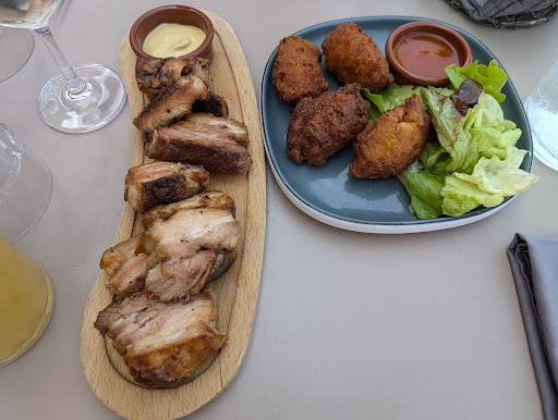 We stayed in the airbnb above this restaurant and so it was a really convenient choice after travelling all day. We were blessed by a beautiful evening of weather and enjoyed steaks, burgers and the mixed platter. Wine by the glass was absolutely fine. I agree with the other reviews that say this is a great location as you enjoy the view of the town so definitely worth a walk across the bridge to avoid the tourist options for food....