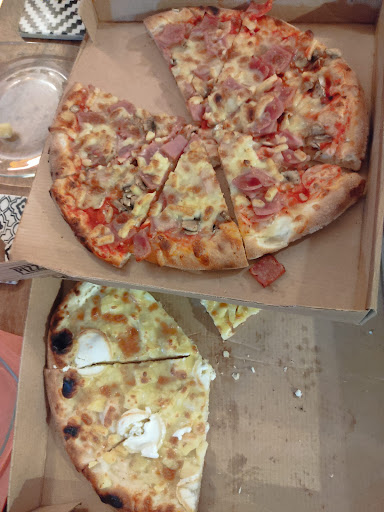 Read moreLivraison en temps et en heure et CHAUDES, garnitures correctes, attention aux oeufs trop cuits sur les pizzas. Niveau goût nous n'y sommes pas, trop fade, pas d'assaisonnement ce qui est le gros bémol... Nous avons rajouter de l'origan sur chaque pizza ce qui n'est rien en coût mais rehausse le goût. C'était note coup d'essai qui ne sera pas transformé si pas...