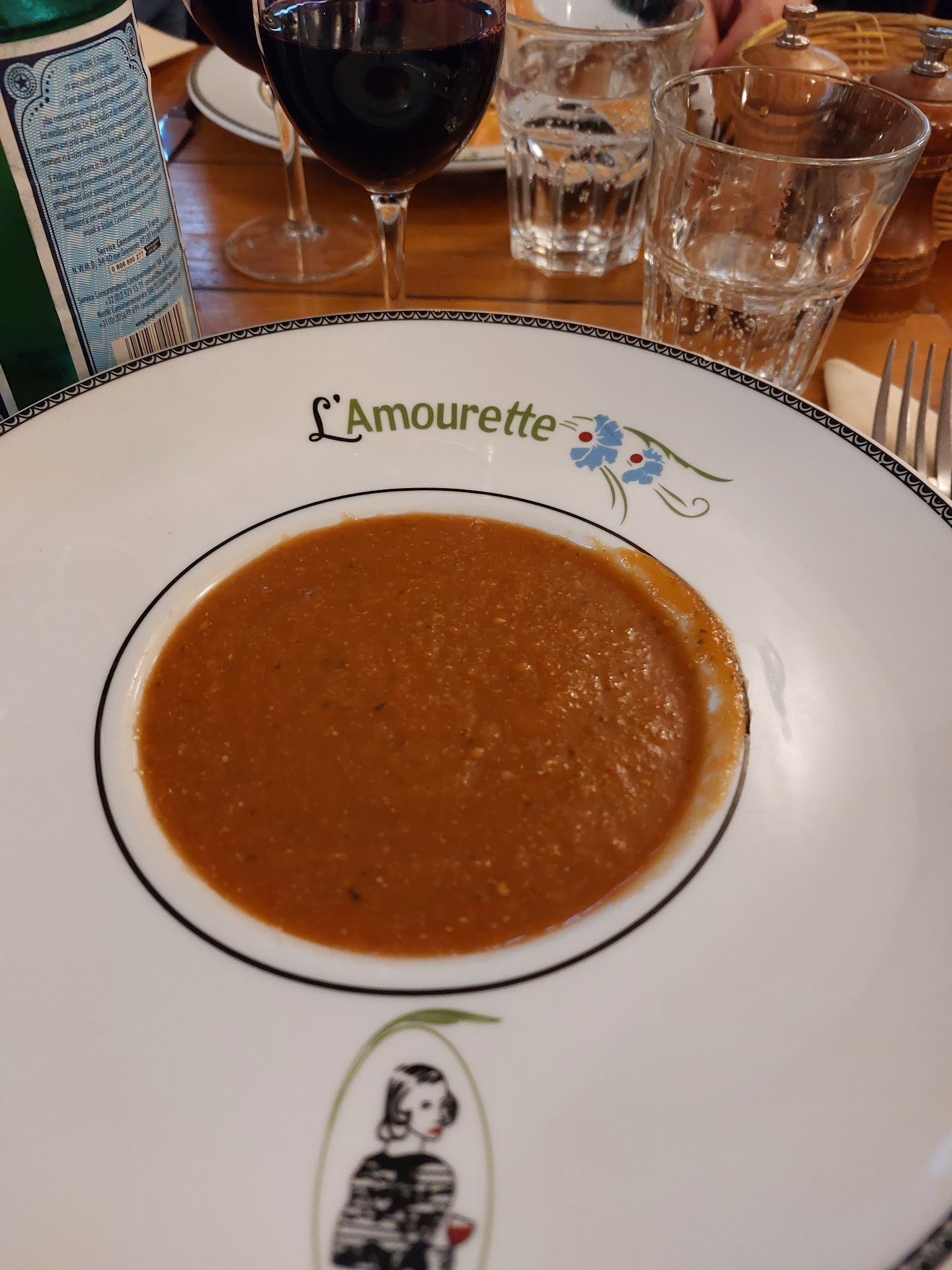 Read moreConnue par hasard, c'est la 4ème fois que j'y venais avec 4 de mes amis pour le petit coin tranquille dont bénéficie l'Amourette à Montreuil ; je voulais également vérifier mes premières impressions ! Pas de changement par rapport à précédemment et au service d'une brasserie ! Déçu par le service sans âme, fuyant et télécommandé par des "mercis" appris par coeur ; tapenade en amuse-gueule mais pas de suivi qd le pain vient à manquer : idem pour le vin pendant le repas et surtout beaucoup de Salers au menu (déclinée en carpaccio, pavé, etc.) avec des patates déclinées elles aussi en purée, frites, vapeur, etc !... Seul point positif : les saveurs ! En revanche, derrière, à d'autres tables, un service ad hoc et plutôt très sympathique à l'égard d'habitués boboïdes de Montreuil, apparemment connus par la maison et qui se regardent le nombril en écrivant tout leur amour d'autrui sur les murs des toilettes, mais sont incapables de rendre un sourire !... Bref, c'est la dernière fois que j'y mettais les pieds et je pense que mes amis également ; j'ai d'autres tables largement plus conviviales chez...