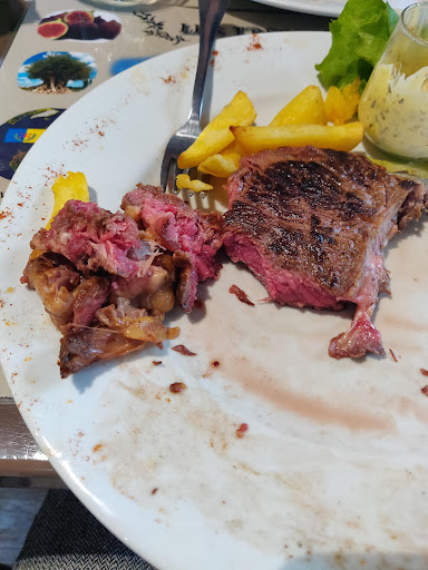The worst steak I've ever had. The meat quality is what should be expected of a low end doner kebab place. We were a group of 4 and not a single one got the doneness he requested. Mine was half well done half blue rare, when I asked for medium rare. Don't even know how clueless of cooking one has to be to ruin a steak this badly. Had to left most of it on my plate, it was impossible to eat. Already been here a year ago, and the quality still the same. I would suggest the chef or whoever is making steaks to at least watch a YouTube guide on meat cooking...