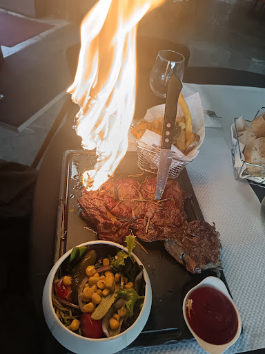 Il a fallu environ vingt minutes pour que nos plats soient servis, alors que le restaurant était presque vide. Pour le burger, c'était la catastrophe : nous l'avons dû renvoyer en cuisine, car le pain était cramé et dur comme du béton, la viande présentait également des problèmes et les frites étaient mal cuites. Quant à mon plat, j’ai eu trois viandes dans une assiette accompagnées d'un bol pour la sauce et les légumes, avec de la semoule servie à part. La viande était gelée, le poulet froid et mal cuit, la merguez semblait être la seule viande du jour et la viande rouge était froide, assurément pas du jour !
