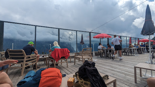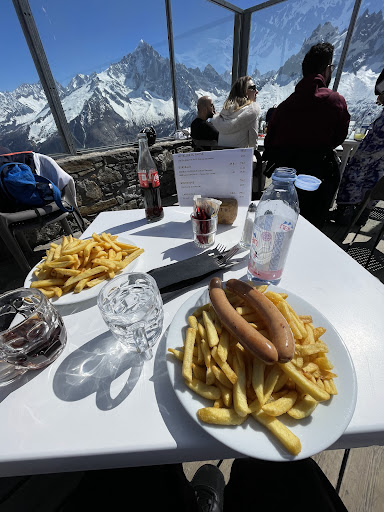 Read moreThe panoramic shot of the Mont-Blanc massif is simply breathtaking. The white snow, the blue sky, the clean mountain air! The staff is fast, comfortably bilingual ( English and French) and ready to help you with your order, your payment, etc. The place can sit a ton of people, and still: be ready for a long queue on the weekends and winter holidays if you want to have your lunch outside on a sunny day! The food is honest, the only fancy things on the menu are the desserts. It offers hot and cold dishes, hot and cold drinks, all at reasonable prices ( 16€ for a burger and fries, 24€ for an entrecôte and fries) and the toilets are free to use even if you're...