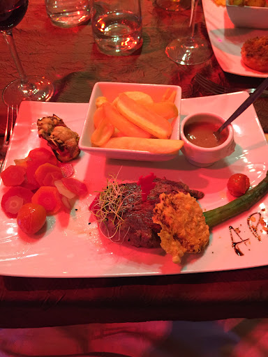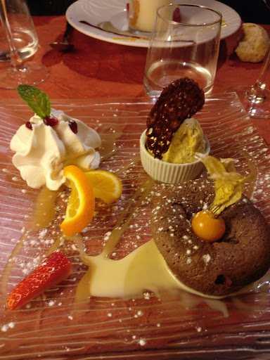 It is not in the center of the town(just 2 min walk) but that is great because on a Saturday evening, without reservation(our fault), we could not find any free table at any of the terraces from the main square( we were hungry and have a small kid) but we were lucky to find this hidden gem at just a couple of meters from the main square but not as visible as the others, and they kindly welcomed us. The food and the service were very good(I had a very good steak - forgot the name in French, my kid a burger and my wife a salad) and the atmosphere cozy so we were...