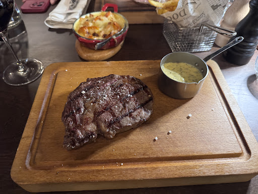 Read moreWe had a fantastic meal at the Beef Lodge. Its a quality establishment with an extenesive wine list from across the different regions of France and a class selection of meat cuts from all over the world. The staff here are well trained, welcoming and knowledgable (a similar vibe to Hawksmoor or Gaucho in the UK). The restaurant is busy, a great, atmosphere and with beautiful decor. We didnt share one of the large cuts on offer as (sadly)my wife wanted the fish, I had the cut with the whisky flambe, a tender flame grilled steak with a smokey finish which I highly recommend if you want your steak slightly different! All the food was excellent and we were well looked after including our doggo, Hector. We will definitely...