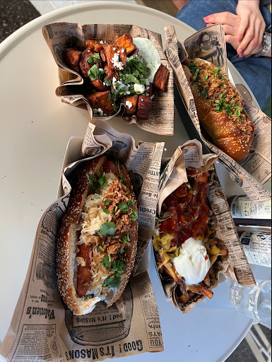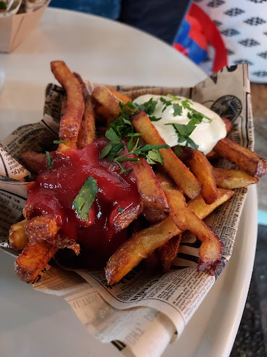 The Korean hotdog is good and the kimchi in it is also very good and crunchy. The New Mexico fries were fantastic. Prices are also very reasonable, averaging to about 11€ per option.