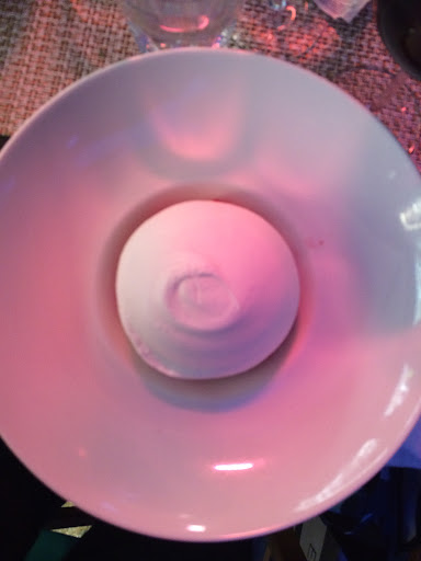 Dessert j'ai hésité avec un de mes gâteaux préfères la tarte au citron ou un autre moins dans mes habitudes, baba a la chartreuse. Au final j'ai pris un autre désert inhabituel pour moi le Pavlova. Je connais de nom mais ne savait pas exactement ce que c'était. Donc au départ un peu déçu de découvrir juste une simple meringue, aux boules de mirtilles et glce vanille et crème fraîche (perso j'avais pensé au yaourt) dedans. Mais au final Ce pavlova revisité était délicieux. Très jolie présentation mais si bol avait était noir ou rouge ou autre couleur ça aurait fait resortir, valoriser la meringue.