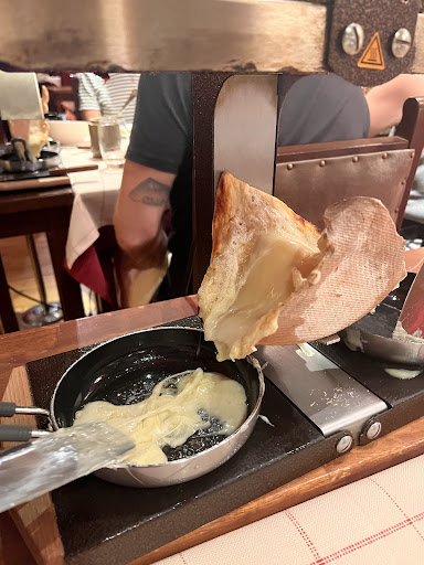As an aside, we've visited many similar restaurants and been able to take away any uneaten raclette cheese in a "doggy bag". When we asked if this might be possible at La Calèche, the waitress glared at us, mumbled something under her breath, and swept the cheese away. Our only assumption from this was that the cheese is a) thrown in the bin (wasteful) Or b) re-used in another cheese dish, e.g. fondue (unhygienic).