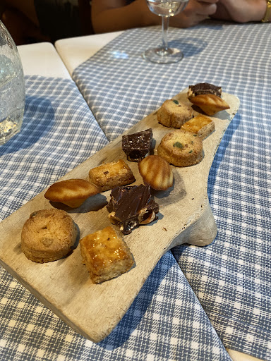 Pour finir, l'incontournable Vré ou buffet de dessert a un goût de "chez mémé" (disponible également pour le goûter). Le flan est particulièrement réussi, on sent qu'il est généreux, à la crème, avec une consistance moelleuse. Tartes, tartelettes, gâteaux de toutes sortes, le choix est tellement pléthorique que vous aurez du mal à ne pas y trouver votre bonheur. Les fruits ne sont pas en reste pour finir sur une touche plus légère. Et si jamais vous n'êtes pas un bec sucré, le chariot de fromages sera là pour répondre à un fin de repas réussie. Au repas s'ajoute une petite planche d'amuses bouches "offerts" pour aller avec l'apéro, et des mignardises pour le café. Le choix des vins est large et à un éventail de budgets permettant d'y trouver sans difficulté de quoi accompagner ces agapes.