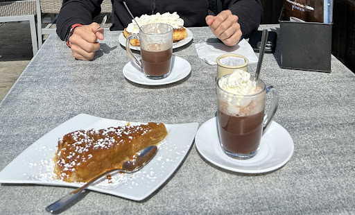 Unfortunately, we weren’t informed that the kitchen closes at 3 PM, and there was no sign, so we ended up just having dessert. The service was quick, and the food arrived promptly. The waffle was one of the best we’ve ever had, and the hot chocolate with whipped cream was delicious. The apple cake was too large and far too sweet for my taste. The view is absolutely stunning, but the atmosphere was a bit spoiled by a lot of noise from children and other guests. It’s a great spot to bring kids, though it is on the...