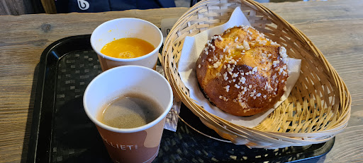 We loved this little village, we wanted to stop for some lunch after an amazing trip over the mountains. We had free parking with amazing views of the snow capped mountains. The bakery caught our eye and loved the look of the cakes in the window. The ones pictured were outstanding, we also had a panini which was big enough for us to have half there and half later that day. Coffee was tasty, the staff were friendly but not over enthusiastic. The toilets were nice, fresh, clean and soap smelt lovely. The only thing stopping me giving this a 5 star was the price. It was expensive for the food it was. Still would...