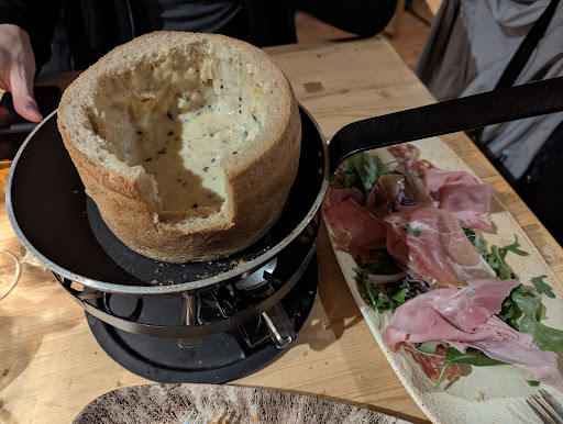 Read moreLes vacances commencent à peine et nous avons déjà notre restaurant champion pour plusieurs décennies 😅 Si je ne vous recommande pas ce restaurant, Samoëns en revanche reste toujours aussi charmant (normal on habite la Haute-Savoie 😉). Ce restaurant (bobo branchouille) a un intérieur chaleureux dans un esprit chalet. Nous avons été installés directement à l'étage (bof), dans un coin un peu à l'écart. Le serveur nous a apporté le vin sans nous présenter l'étiquette, ni avant, ni après l'ouverture 🤔 Bien qu'il fût souriant et efficace, sa posture pas la suite (tête baissée) rendait impossible toute interaction ; il n'est d'ailleurs jamais venu s'enquérir de notre satisfaction durant le repas. La fondue est servie dans des miches de pain posées sur un poêle chauffé par un réchaud (bobo…). La version "classique" c'est à base d'Abondance et de Tomme (bienvenue chez les Branchouilles, dont la mode est aussi la moitié-moitié Suisse. C'est plus léger, plus digeste, mais a nettement moins de caractère qu'une fondue avec du Beaufort). Les propositions de magret de canard et de bœuf façon tataki (cuisine froide d'origine japonaise) sont également éloignées des classiques donc en cohérence avec l'ensemble 😅. Je me suis donc rabattu sur un faux-filet. La cuisson demandée (saignante) était respectée, la viande était épaisse, mais elle était froide 😨 et sans saveur particulière. Le dessert, une Pavlova, s'est avéré décevant. Traditionnellement composée de meringue, chantilly et fruits frais, elle était ici servie avec des coulis de fruits dans des petits verres. L'ensemble n'était pas convaincant. Au moment de régler l'addition, la jeune patronne m'a demandé si tout s'était bien passé. Flûte, je savais d'avance qu'aucune remarque négative ne serait tolérée chez ces gens-là, mais face à son insistance après mon silence initial, j'ai évoqué poliment ma viande froide. Sa réaction prévisible fut celle de la défense plutôt que de l'écoute (?). Elle a encaissé sans broncher les 97 € pour deux plats, deux desserts et une demi-bouteille (sic). Bienvenu en 2025 😂😂 Allez, je repars dès le lendemain dans des restaurants-chalets classiques : bonne cuisine, service impeccable, patrons et patronnes conviviaux, bref, du bon...