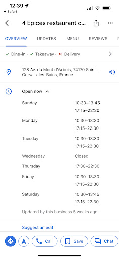Read moreCan’t comment on the food but Google said it was open at 5.15 so we drove there to eat at 6pm but I was told it doesn’t open until 6.45 and open for reservations at 6pm - as this is a Google review it’s appropriate to give one star for misinformation. Just say it opens at 6.45 (open means open for business - it doesn’t mean that you start work and have dinner yourself whilst customers wait for you) - i would be happy if you just apologised that the information needed changing and that you would update it and more than happy to...