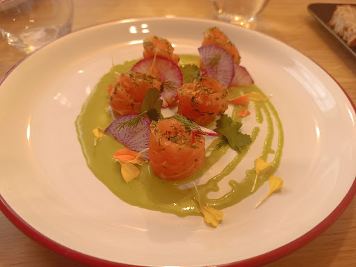 Accueil et installation : Nous avons été accueillis après 5 minutes d’attente. Nous avons été installés à une table le long du mur, mais l’agencement des tables nous a fait frôler les suspensions des luminaires en nous y rendant. Pas très agréable, mais bon, passons.