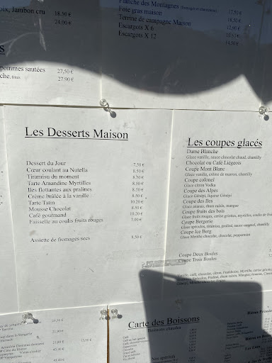 Read moreMa copine et moi avons fait une pause dans un restaurant des Alpes françaises hier, espérant prendre un café rapide et jeter un œil au menu pour peut-être revenir plus tard. Cependant, cela ne s'est pas passé comme prévu. Nous avons attendu longtemps pour passer commande (peut-être compréhensible en raison de l'affluence), mais dès le début, la prise de commande a été chaotique. Ils ont pris notre commande incorrectement, puis ont dû revenir pour la prendre une deuxième fois, et même ainsi, ils ont omis une partie de ma commande. Le lait dans mon cappuccino était visiblement avarié, donnant un goût repoussant, probablement du lait vieux.