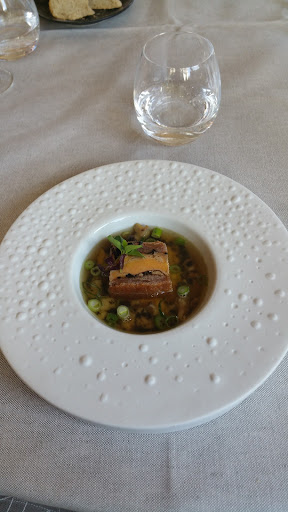 Nous avons choisis ce restaurant pour son 1 étoile. Malheureusement, la cuisine et le personnel de salle sont pressé et ne veulent pas finir tard… Nous avions réservé pour 20h45/21h nous avons mis plus de temps que prévu à nous garer, nous sommes donc arrivé a 21h10 au restaurant, nous les avions appelé pour les prévenir de notre retard. A 21h25, la responsable de salle (je présume) nous dis qu’il faut se dépêcher pour la commande car la cuisine ferme. Nous choisissons donc à la hâte notre repas. Elle nous donne 5 minutes de plus pour choisir le vin, nous étions chanceux ! Nous avons pris une coupe de champagne pour l'apéritif servie avec des amuses bouches. Malheureusement nous avons pas eu le temps de déguster ni les coupes ni les amuses bouches que les entrées était déjà servie à notre table. Nous avons donc laissé refroidir notre entrée pour terminer notre apéritif.