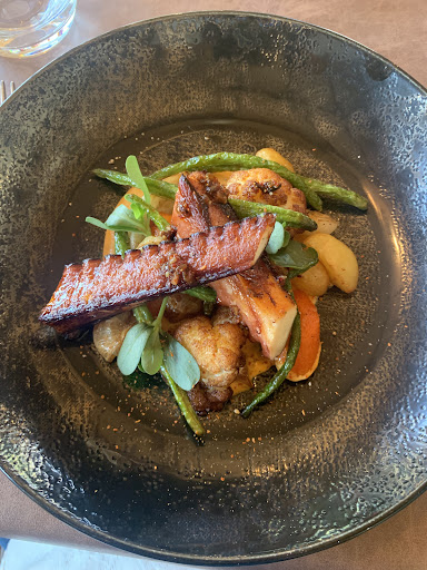 Un accueil quelconque peu chaleureux pour ce restaurant où nous avons joué à 5 personnes le jeu de la surprise avec un menu a 59 euros avec entrée 2 plats dessert surprise qui devait tenir compte de nos allergies ...un foie gras révisite..qui n'a pas convaincu tant le goût du foie gras avait disparu et le chocolot dessus n'avait pas été retiré pour la personne allergique..les saveurs des accompagnements ont néanmoins réveillé nos papilles...un filet de dorade et ses accompagnements ordinaires en terme gustatif..le morceau de veau farci excellent..et des accompagnements bons..mais sans surprise...les desserts sortaient du lot avec des saveurs qui explosaient en bouche..à base dagrumes..de châtaigne pour dautres..et des présentations à couper le souffle...bien sûr des quantités minuscules..ce n'est pas surprenant..et un départ sans un regard et un au revoir...c'est un tout! Dommage...quand on veut faire gastro ...
