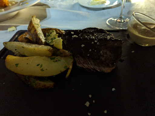 Regarding the menu and what we ordered: we had the risotto and the entrecôte. Risotto was a bit undercooked and the flavor was slightly blend. The seafood (shrimp) felt like a separate dish instead of something you could eat together. For the entrecôte, it was quite gummy (usually happens when the meat is raw instead of slightly cooked, which start breaking down fat and meat) but perfectly seared. You get that nice caramelized outside.