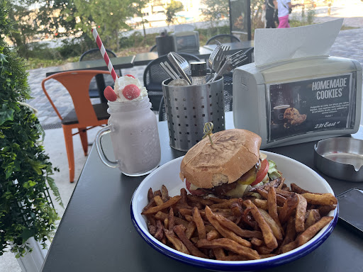 Read moreLe cadre est sympa et la terrasse est agréable. Un peu déçue par le plat au vu du prix proposé (on s’approche des 40€ pour 2 personnes pour formule burger + accompagnement + canette + milkshake). Le burger : bon et nourrissant mais sans plus. Le pain semble frais et apporte vraiment un plus par rapport au reste. Commande d’une salade en accompagnement à la place des frites, très basique & salade fade (iceberg ?) Bref : on aura vu mieux ailleurs pour un tarif inférieur ou égal. Le top qui remonte la note : très bon accueil du personnel, souriant...