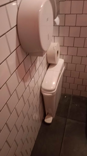 The toilets did not have a seat, with a thick layer of dust on the walls and doors, very little discretion for the urinal which can be seen in the reflection of the mirror.