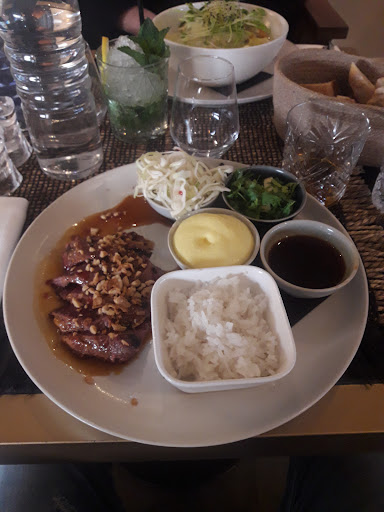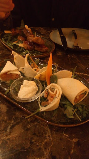 Read moreNous sommes allez la bas pour aller au restaurant pensant tomber sur une carte "traditionnelle" avec entrée, plats et desserts, en plus de leurs coktails mais quenini, nous sommes tombé sur une carte plutôt original mais qui n'as ni queue ni tête lol ont était un peu perdu car on se demandais si c'était des entrées ou des plats ou les tapas du bar 😅 ont a dû même demandé à la serveuse...bref du coup on est parti sur le fait que les plats étaient a partagé, nous avons pris du poulet yassa et du saumon fumé. Alors autant c'était bon, autant pour accompagner le saumon il n'y avait que 3 malheureux blinis et après du pain a côté moyennement frais. Pour le poulet pas d'accompagnement du tout, le plat c'est : 2 petits morceaux de poulet, des olives, des oignons et des feuilles de bricks posé dessus. Mon conjoint s'est ranger sur le pain pour saucer son plat. Du coup on a pu partager le saumon mais le poulet fallait que je coupe le morceau et me serve dans son assiette comme a la maison, le concept du partage en mode tapas n'y est pas. Clairement c'était bon mais quant au prix exorbitant pour la quantité, je trouve que c'est très limite. Environ 20€ le plat. Nous n'avons pas goûté aux cocktails donc pas d'avis dessus. Par contre on a beaucoup aimé le cadre et la déco, c'est sympa de trouver un lieu comme ça dans une zone commerciale finalement. Par contre la musique était bien trop forte , pour manger c'est limite aussi pour s'entendre. On reviendra sûrement boire un cocktail et profitez de la terrasse (oui on ne nous a pas du tout proposer de manger en terrasse, dommage !) qui a mon avis est bien mieux pour ça ! On ne reviendra pas manger par rapport au...