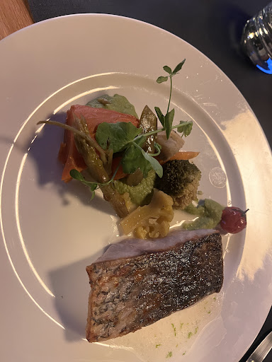 Read moreDans l’ensemble le groupe a été déçu notamment par l’entrée, pannacotta très fade et texture granuleuse, les 3/4 du groupe de 61 personnes n’ont pas aimé, le bar excellent manque un peu de légumes dessert café gourmand très bien , vin également Un peu trop chaud pas assez d’ouverture en salle et bruyant , mais normal une centaine de personnes, on entendait pas les commentaires il fallait sortir sur le pont dommage que l’apéro n’était pas servi sur le pont il y faisait bon et très bien agencé -...