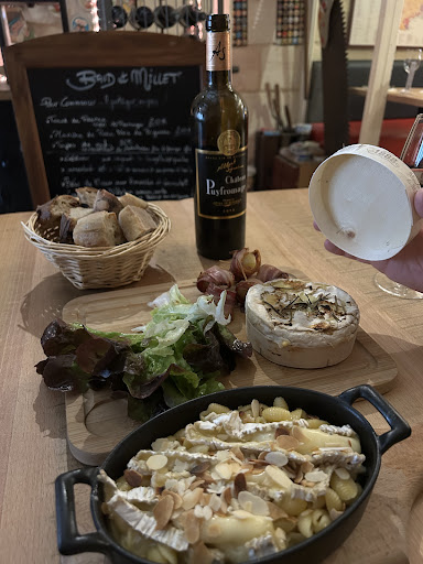 Read moreWe really enjoyed our experience at Baud et Millet! Originally planned to go for traditional fondue, but the warmer October weather and my first glance of their famous "Cheese Cave" changed my mind and we opted for the cave experience. Not really a cave, but a high-tech glass enclosed walk-in cooler, where dozens and dozens of delectable cheeses are offered for a set price of 30 Euro pp, which includes a large salad and great bread. You may visit the "cave" as often as you wish, where you take a plate and a knife and just start tasting all the cheeses you've seen and heard of but may not have tried. We had to limit ourselves, but it was an unforgettable experience for any cheese lover. Reasonable wine is for sale by the bottle in a shop like presentation, or by the glass by the personable young staff. Highly...