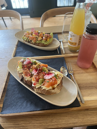 I came twice to this place during my holiday for Bordeaux. The first time was in an evening. I had the Pacific Flora with salmon. It was perfection. The dish was freshly made. The salmon was very tasty with the sweet soja dressing I chose (came in a cute little bottle). The avocado was soft and mango sweet. It has a lovely decorated salted fromage frais on top with a raspberry. The 2 chefs were very friendly and chatty. They offered me to go upstairs (even though there was no one upstairs at the stage) and started the air-conditioning there for me. The ambiance is very cool with the furniture and decoration. I enjoyed the chilled music/songs they play. When I finished my meal, I got a chia pudding with mango puree to take-away as I thought it will be well made in place like this. It was delicious.