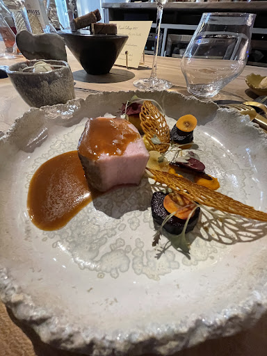 We had the immense pleasure of dining here two evenings ago. Having dined all over, my first impression was that the concept is very original. You get a little card explaining the “game” of guessing the three ingredients that compose each of the 9 courses you will enjoy for the evening. This was supremely enjoyable fun but also made us a bit awe struck that each course was prepared with only those three ingredients. At the end of each course, Isabelle came and checked to see how we did. She was so warm and kind and interactive, cheering us on when we were right and educating us about those spots we had missed. We did the full universe with drink pairing and it was a lot of food! I wish I had brought a second stomach to be able to eat more!!! Julian was the star of the night. He is filling in for his dad, but no one could feel they got less than the best. Julian is an excellent and accomplished Chef by his own rights and I cannot wait to follow his career to see what heights he will achieve.
