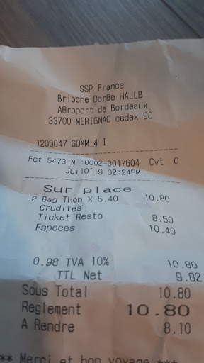 Read moreOn ne peut pas dire que votre employée soit très aimable...j'ai bien vu qu'elle était en train de ranger ses dernières pâtisseries, je m'avance dis bonjour, pas de réponse, j'ose demander juste une boisson svp...et la réponse tombe sèchement ; c'est fermé Monsieur !!! Ouah le sens du commerce...à 17h10 dans un aéroport qui se veut être international, c'est triste et risible. Bonne continuation...