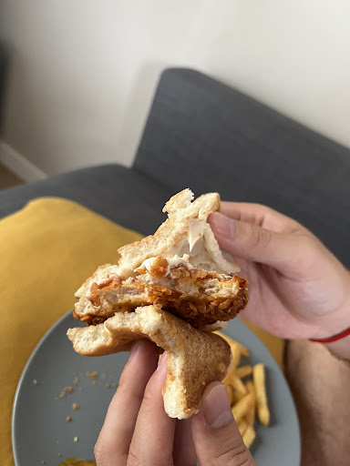 J'avais pris deux burgers mystères, je discute avec la personne qui préparait ma commande, elle me dit qu'il y a un petit burger et un gros. Je remercie la personne. Quand il est arrivé, je le vois aller aux cuisines et reprendre la préparation de ma commande, comme par hasard, j'ai deux petits burgers. Évidemment, la boisson du menu commandé à part est à moitié vide, autant dire qu'il n'y avait que 3 gorgés et bien sûrs pas de sauces avec le menu, il manquait une cuillère pour la glace et les serviettes.