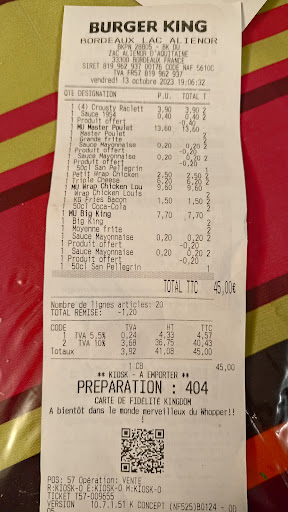 Read moreCe soir 13 octobre, nous sommes venus prendre des menus à emporter, mais une fois revenu à notre domicile nous avons découvert une commande complètement lunaire ! Nous avons découvert des produits que nous n'avions pas commandé : Deux frites cheddar Onions rings X6 et un burger composé d'un steak et deux bouts de bacon sans fromage ni crudités complètement innommable. Le problème majeur vient du fait que par contre il nous manquait les 2/3 de nos sandwichs, un Big King , un master chicken , un triple cheese , un p'tit wrap cheese moutarde . Ce qui représente non seulement la partie principale de notre repas mais aussi un sacré budget. Il m'est arrivé d'avoir des surprises dans cet établissement de moindre importance, oublie de sauces , oublie d'un steak commandé en supplément, mais ce soir j'estime que l'équipe a lourdement fauté . Dans l'incapacité de repasser (puis surtout sur quelle base une fois sorti a l'extérieur..)et je ne vais pas non plus déballer sur les caisses le contenu du sac et contrôler a chaque fois. Il ne me reste que cette option pour décrire notre mésaventure.Vous comprendrez aussi que nous ne souhaitons pas revenir dans cet établissement que nous avons fréquenté de nombreuses fois tout de même et qu'à l'avenir nous en choisirons...