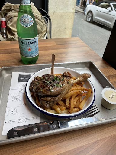 I was looking for a place to try confit de canard around the neighborhood. I went to a posh restaurant providing traditional food but unfortunately they didn’t have confit de canard. The waitress suggested me to come here as a replacement. I was very surprised by the theme as a duck meal place. I ordered the duck leg with fries. The meat was very tender and the fries were good. I forgot to ask if they could make fries seasoned with salt pepper because that’s my favorite seasoning on fries. But the tartare is not bad. It’s definitely a good experience to try out a duck meal before me leaving Bordeaux.
