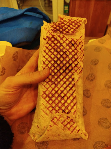 Seul bĂ©mol, j'avais commandĂ© des frites avec (autres que celles prĂ©sentes dans le tacos), elles n'y Ă©taient pas. Le livreur m'a tout de mĂȘme prĂ©venu, en s'excusant de son lĂ©ger retard, que le restaurant Ă©tait assez dĂ©bordĂ© ce soir lĂ , et je comprends, un vendredi soir aux alentours de 20h, un petit oubli n'est pas Ă exclure dans l'urgence. C'est largement excusĂ© vu la qualitĂ© du tacos.