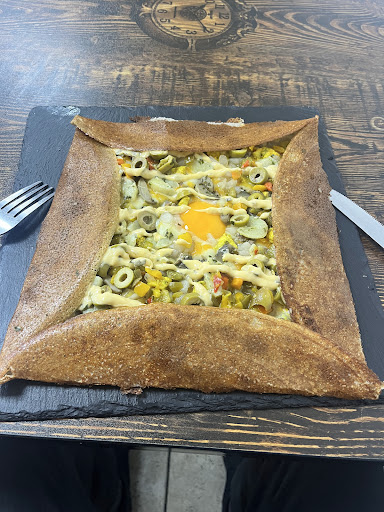 Read moreUne étoile car c'est le minimum nécessaire pour pouvoir mettre un avis, mais cet établissement ne mérite aucune étoile. Pour vendre des galettes et des crêpes, le mieux est de savoir les faire !!! Les pates sont insipides la cuisson pour les galettes n'est réalisé que d'un seul côté et les ingrédients sont posés sur le côté non cuit donc cru... La cuisson n'est donc pas suffisante et on mange un produit presque cru ! J'ai été malade avec des vomissements moins d'une heure après ingestion d'une infame soit disant galette complète avec à l'intérieur des champignons ! cherchez l'erreur. Ces guignols sont donc de très mauvais restaurateurs et avec un grand doute sur la fraicheur des produits utilisés. A fuir absolument !!!