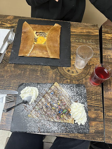 Personnes sympas a l'accueil pour envoi de colis. Accepte l'envoi sans emballage et essaye toujours de dépanner ( rescotch si necessaire etc... ). Au niveau crepe, les menus sont sympas et pas franchement élevé pour les crepes salées (au 09/03/2024, elles commencent a 6.90 euros !!! ). Par contre, quel dommage que les crepes classiques ne soient pas mise a l honneur ( crepe jambon etc... ). Du coup, soit on choisit une crepe originale ( americaine au gout proche du burger, ranch proche du gout poulet curry etc... ). soit il faut la composer soit meme. Et quand on est dans la queue, on a pas forcement le temps de reflechir. Au niveau gout, un peu trop de sauce, c'est dommage... Les crêpes sont bonnes mais peu garnies malheureusement. On part avec la faim au ventre ( un petit macdo est plus nourrissant ). Au niveau service, c'est un peu flou. on paye d'abord et on a ensuite un beeper qui nous prévient quand tout est pret. Le service est decousu: nous sommes 3, 2 ont été servis, puis des gens qui sont arrivé et ont été servis après nous, puis j'ai été servi...Du coup, on mange pas en meme temps... Ca casse le rythme et c'est derangeant.... Les crepes sucrés sont bonne, surtout avec nutella et caramel beurre salé. Mais la crepe au sucre n'a pas énormément de gout. Je souconne une pate industrielle ( ou bien problème dans la conception de la pate: manque de sel et surtout de sucre ). Je suis...
