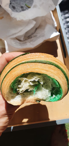 les viennoiseries sont excellentes et originales. Apres l originalité a parfois ses limites... j'ai un peu du mal à comprendre ce croissant au pur goût de pistache qui est si délicieux, gaché par ce vert fluo si ... artificiel et perturbant. Alors je le déguste en fermant les yeux. Mais quel dommage. Et je n'ai pas compris non plus la viennoiserie brownie plaque de chocolat blanc gelée d orange ou de citron(?). L'ensemble des textures n'étant pas harmonieux, la gelée apportant du sucre mais pas de goût. Je trouve que le feuilletage de la chocolatine chocolat orange a un goût moins beurré que d autres de vos viennoiseries. Le prix est par ailleurs excessif compte tenu qu'il n y a qu'une fine barre de chocolat et une barre d'orange, et gustativement ça manque. Prix excessif également de la chocolatine gianduja noisette même si le goût du feuilletage est là excellent. Ca manque cruellement de générosité D'autre part, la pâtisserie ne semble pas être à la hauteur des viennoiseries et c'est dommage de se desservir ainsi, de mon avis.
