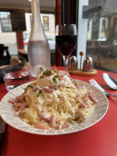 Came here around just past noon on a weekday for lunch (formule ~15e). Great big windows for light, food portions to price ratio is great, and quite tasty. Wine rec from the waitress was also yum.