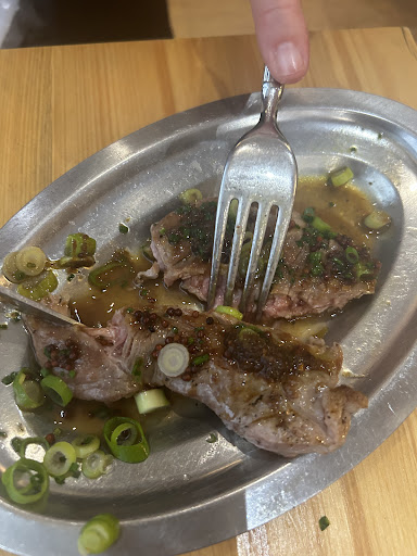 Loved the vibe and the food, would happily return to try different things if I had more time in Bordeaux. We were given a complimentary chickpea and fish soup starter we weren't expecting, and it was really lovely. The confit lamb and the veal dish went down really well at our table. It was a bit confusing that the menu didn't say what sides our dishes came with, but everything we were brought (grilled butternut squash and a barley risotto) was wonderful. The bread that came with our meal was a highlight too, couldn't stop eating it. We were too full to try dessert at the end! The staff were super friendly and nice, even as we tried communicating in slightly...